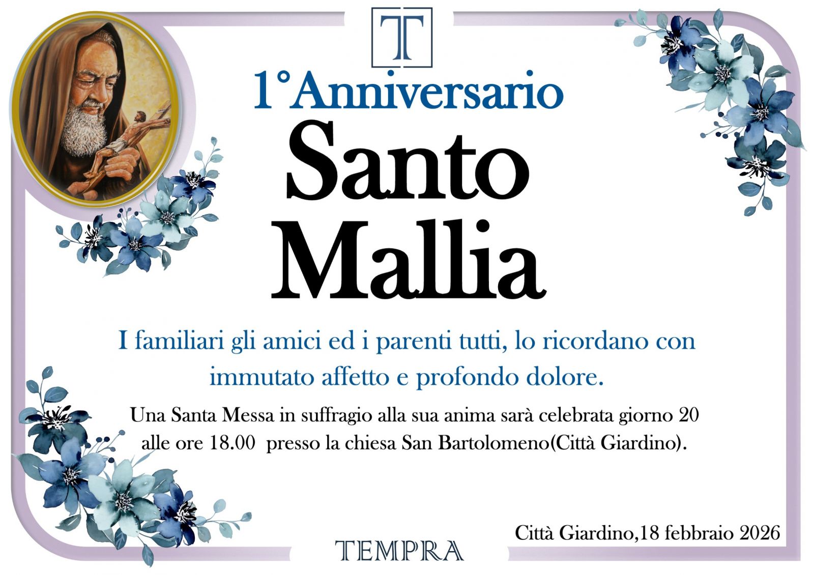 Lascia gratuitamente un messaggio di cordoglio, sarà nostra cura consegnarlo ai congiunti di Santo Mallia.