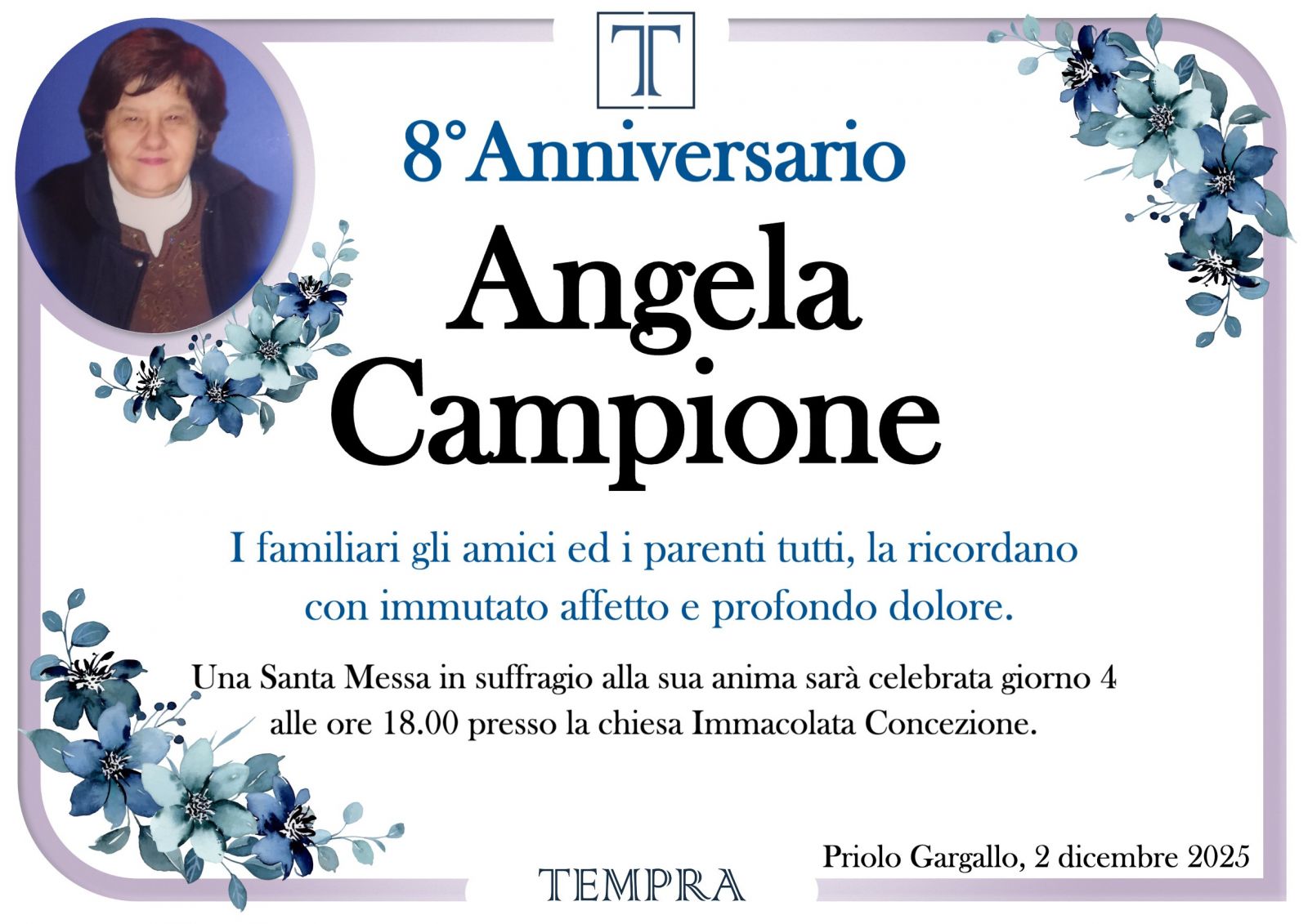 Lascia gratuitamente un messaggio di cordoglio, sarà nostra cura consegnarlo ai congiunti di Angela Campione.