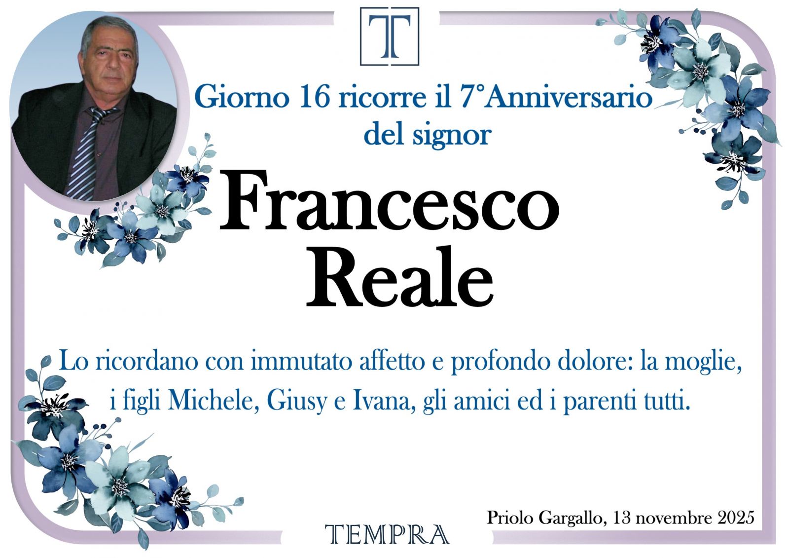 Lascia gratuitamente un messaggio di cordoglio, sarà nostra cura consegnarlo ai congiunti di Francesco Reale.
