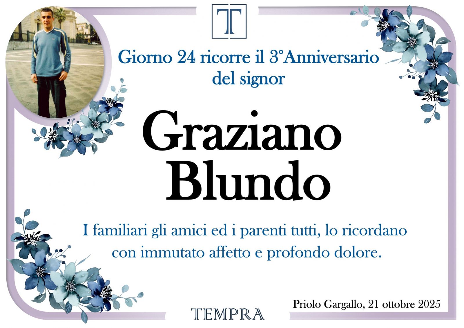 Il tuo messaggio verrà stampato e consegnato alla famiglia di Graziano Blundo.