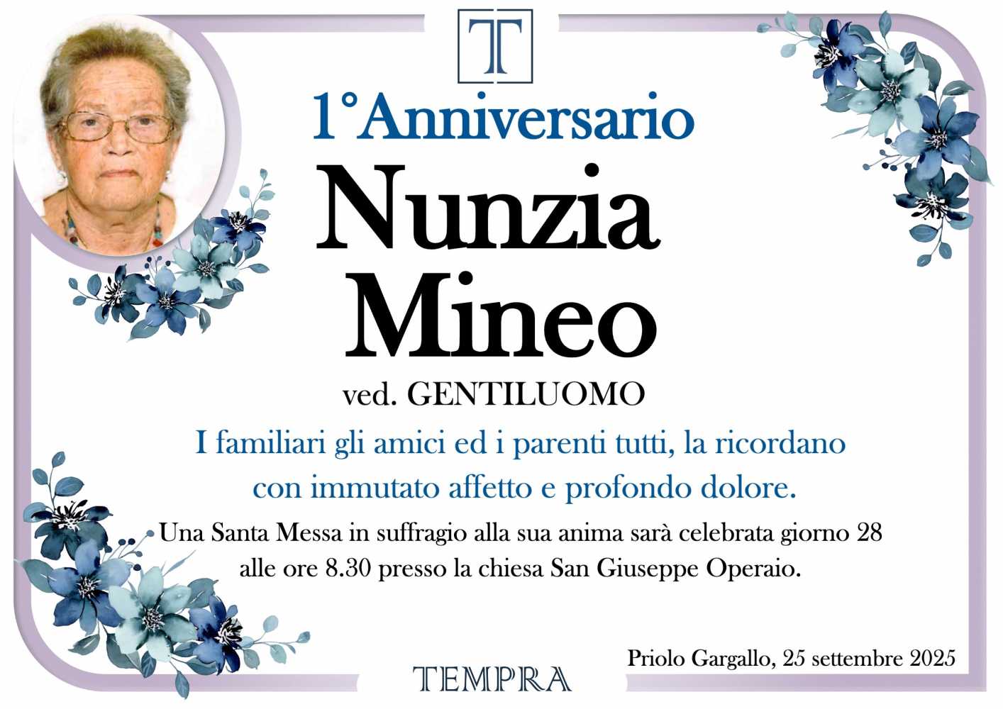 Lascia gratuitamente un messaggio di cordoglio, sarà nostra cura consegnarlo ai congiunti di Nunzia Mineo.