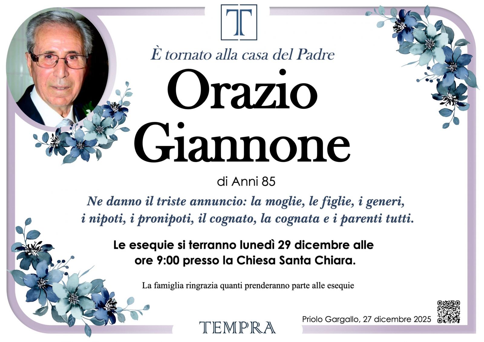 Lascia gratuitamente un messaggio di cordoglio, sarà nostra cura consegnarlo ai congiunti di Orazio Giannone.