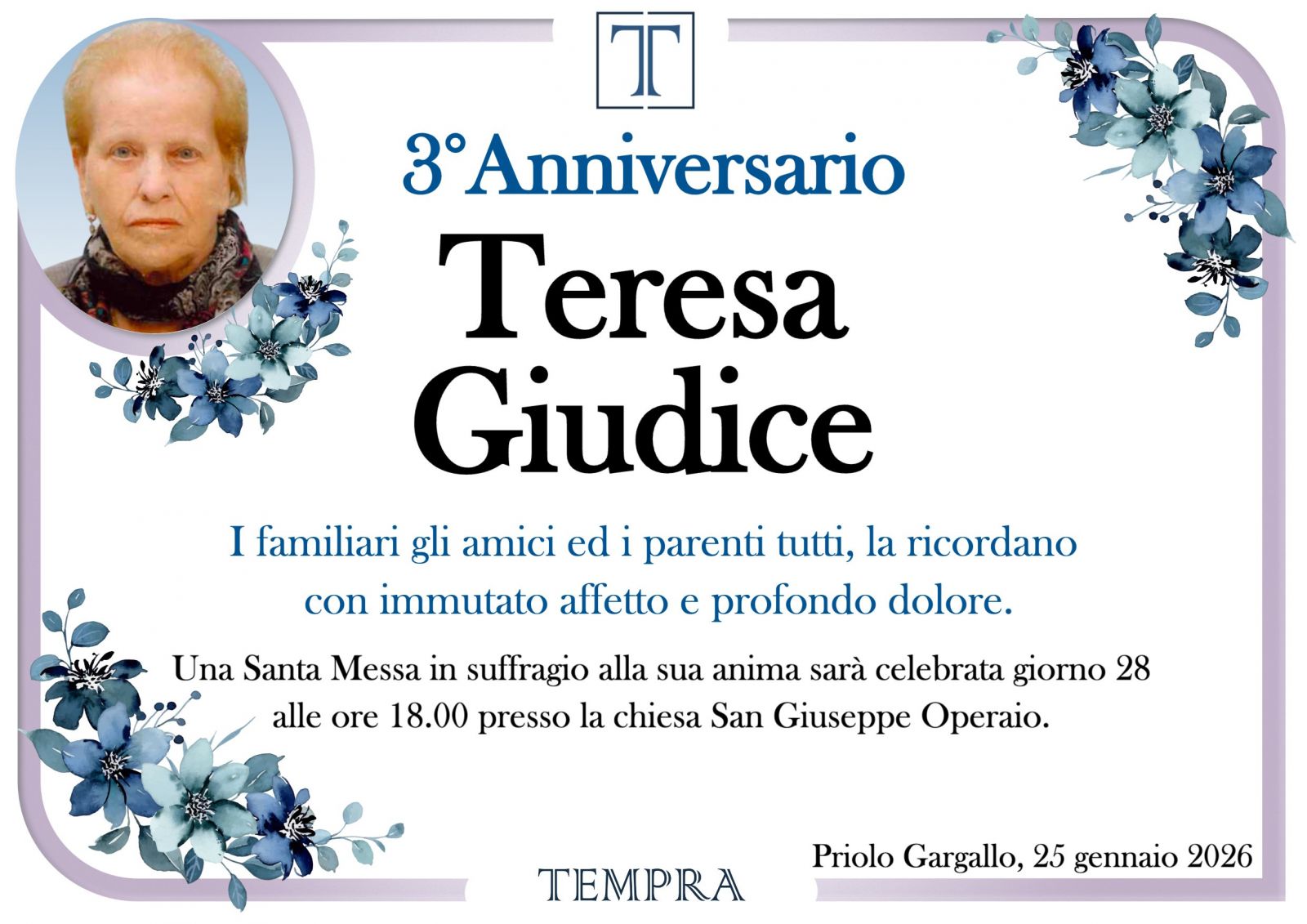 Lascia gratuitamente un messaggio di cordoglio, sarà nostra cura consegnarlo ai congiunti di Teresa Giudice.